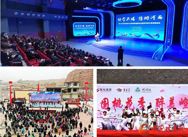 全省推出21條精品旅游產(chǎn)品投放在12306APP“鐵路游”版塊,其中包括“環(huán)西部火車游·暢游甘青寧新蒙五省游”“環(huán)西部火車游·經(jīng)典絲路五日游”“環(huán)西部火車游·甘寧全景八日游”“環(huán)游大西南”等4條旅游專列線路。4月1日起,敦煌市航班增加并恢復(fù)張掖、嘉峪關(guān)等熱門旅游城市航點(diǎn);節(jié)前在浙江、江蘇、湖北等地舉辦“暢游交響絲路·啟航如意甘肅”文化旅游推介營(yíng)銷活動(dòng),打響甘肅文旅宣傳營(yíng)銷、“引客入甘”的開門紅。中川機(jī)場(chǎng)即將開通“杭州—恩施—蘭州”“南京—延安—蘭州”等新航線,搭建起“空中絲綢之路快線”。全省內(nèi)各地大力豐富文化旅游產(chǎn)品供給,如嘉峪關(guān)“尋回古畫中的盎然春意”主題活動(dòng)、定西“山花爛漫,絕美景色藏不住”宣傳專題,臨夏唐汪杏花旅游節(jié)、平?jīng)鲠轻忌教一ü?jié)等;紅軍西路軍古浪戰(zhàn)役紀(jì)念館、八步沙六老漢防風(fēng)冶沙現(xiàn)場(chǎng)等成為開展黨史教育、研學(xué)活動(dòng)的重要場(chǎng)所。
