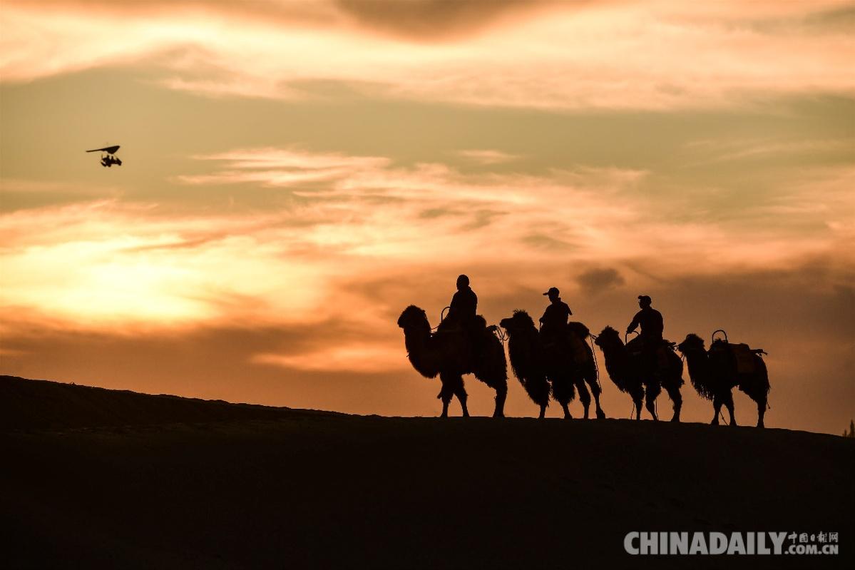 近日,來絲綢之路國際文化旅游名城甘肅敦煌游玩的游客,在騎駱駝暢游鳴沙山的過程中,驚異地發(fā)現(xiàn),這里牽駱駝的駝戶穿上了一種古裝戲中才有的“胡服”,戴一頂高高的帶有帽檐的駝色帽子,頓感大漠旅行情趣倍增,絲路風情更加濃郁。