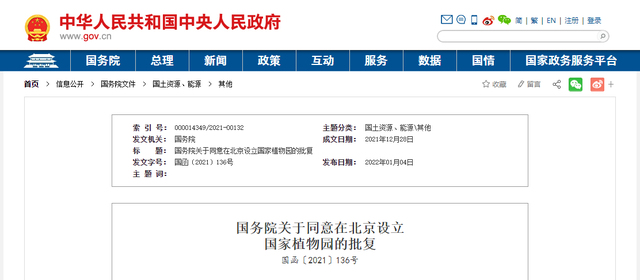 2021年12月28日,國(guó)務(wù)院公開發(fā)布《關(guān)于同意在北京設(shè)立國(guó)家植物園的批復(fù)》(以下簡(jiǎn)稱《批復(fù)》)。《批復(fù)》稱,國(guó)務(wù)院已同意在北京設(shè)立國(guó)家植物園,由國(guó)家林草局、住房城鄉(xiāng)建設(shè)部、中科院、北京市人民政府合作共建。