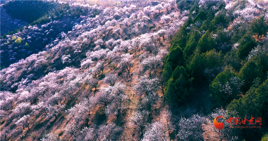 榆中縣車道嶺千畝杏花次第開(kāi)放。