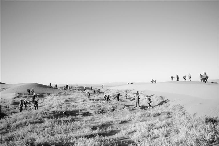 雖然天氣陰沉,氣溫在零攝氏度左右,但郭萬剛心情很不錯(cuò)。這種天氣很可能下雨,下雨意味著林場半個(gè)月前栽種的檸條、梭梭成活率會大大提高。