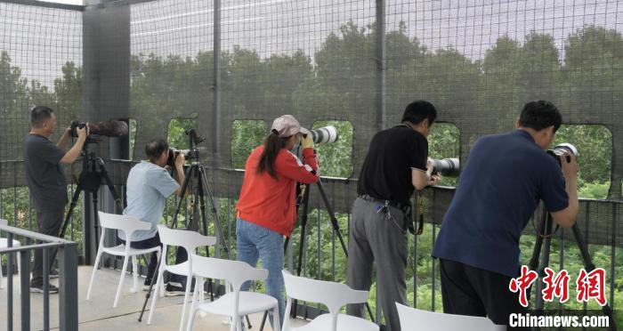 圖為鳥類攝影愛好者在觀鳥平臺(tái)上進(jìn)行拍攝?!∩G锶A 攝