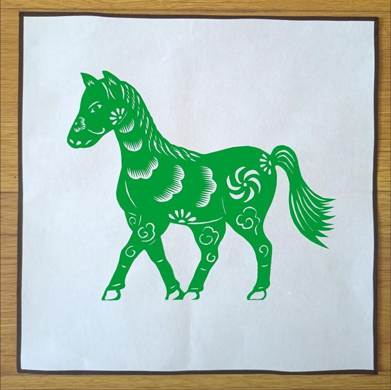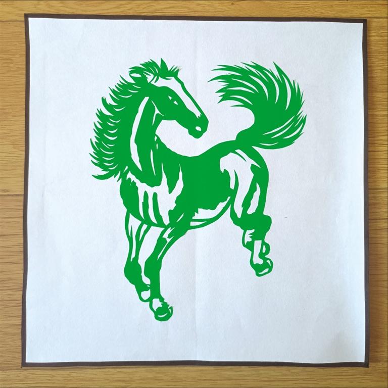 馬作為十二生肖屬相,一直是很重要的剪紙素材,包含著許多美好寓意。吳玲花創(chuàng)作這三匹“綠馬”,也是希望能用剪紙藝術(shù)傳遞祝福,只要大家都能守住“綠碼”,那么此次疫情一定能很快過(guò)去。吳玲花巧用諧音,將平安健康的美好祝愿寄托于這三匹“綠馬”之中。
