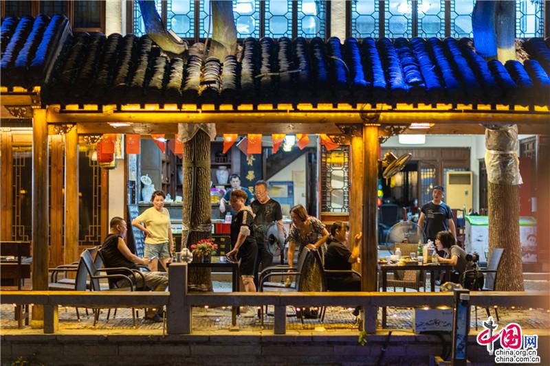 歸來小鎮(zhèn),夜色燈火閃爍搖曳,廊亭中清風(fēng)肆意流連,明月照進街巷里弄,清涼夜周莊,是夏日里的烏托邦。小橋流水與青磚黛瓦交錯成景,輕姿漫步看兩岸燈影交錯;成蔭的綠意里畫著水色繾綣,抬眸皆是神來之筆。夏夜的煙火人間里,是迷人而慵懶的江南底色。