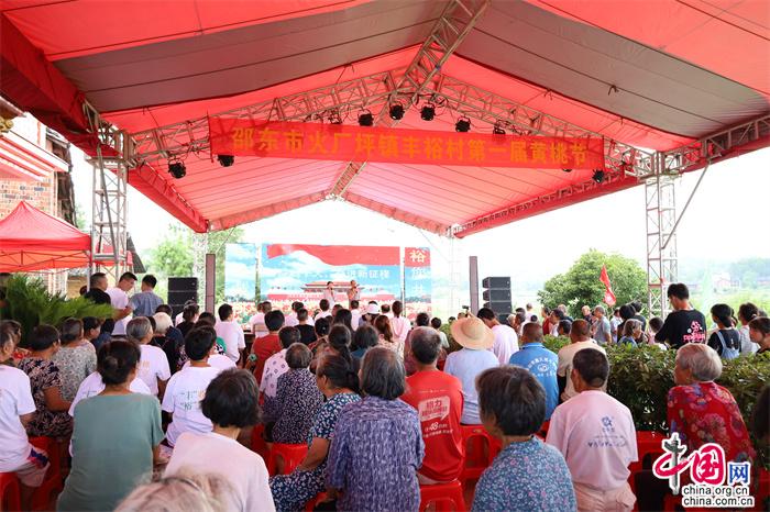 活動現(xiàn)場,邵東市政協(xié)黨組書記、主席羅健康宣布豐裕村首屆品桃節(jié)開幕。村民志愿者組織游客現(xiàn)場觀桃、品桃。舞蹈、花鼓戲、歌曲等由村里組織編排的精彩節(jié)目輪番上演,以文藝形式現(xiàn)場說桃、唱桃,贏得了觀眾的陣陣掌聲。豐裕村黃桃鮮嫩多汁、香甜可口,吸引游客紛紛前去基地摘桃、購桃,將活動氛圍推向高潮。當天,共銷售黃桃1萬余斤,銷售金額9萬余元。