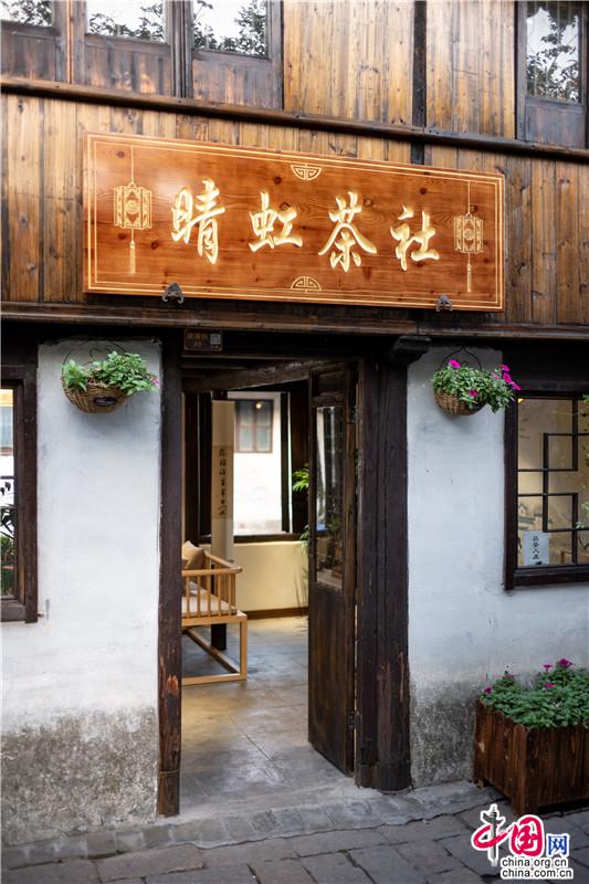 一杯清茶慰秋涼。一半清香,一半醉。湖光軟漾,目光游弋,步子跟著流水緩了下來(lái),斜身隱入街角的茶樓,點(diǎn)上一杯“阿婆茶”,這是周莊入秋的儀式。古樸氣韻、木香纏繞,聲色之間,抿一口茶香,身與心皆泡在這杯江南意境里。正如館名“晴虹茶社”,一杯茶歇,如晴日彩虹,拂開心中塵霧,只見晴天與好事。聚賓樓里阿婆茶香就著聲聲悠揚(yáng),時(shí)間氤氳成過(guò)眼云煙。