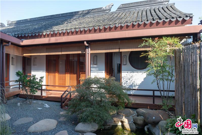 “一見面就產(chǎn)生一種要在這里覓房安居的奇怪心愿。”走進青瓦白墻圍合的宅院,儼然像打開了一幅充滿人文意趣的雅致生活圖景畫。一處竹柵,幾處閑樸,池魚貪吃著天上云絮。靜謐的庭院里尋得萬般自在。
