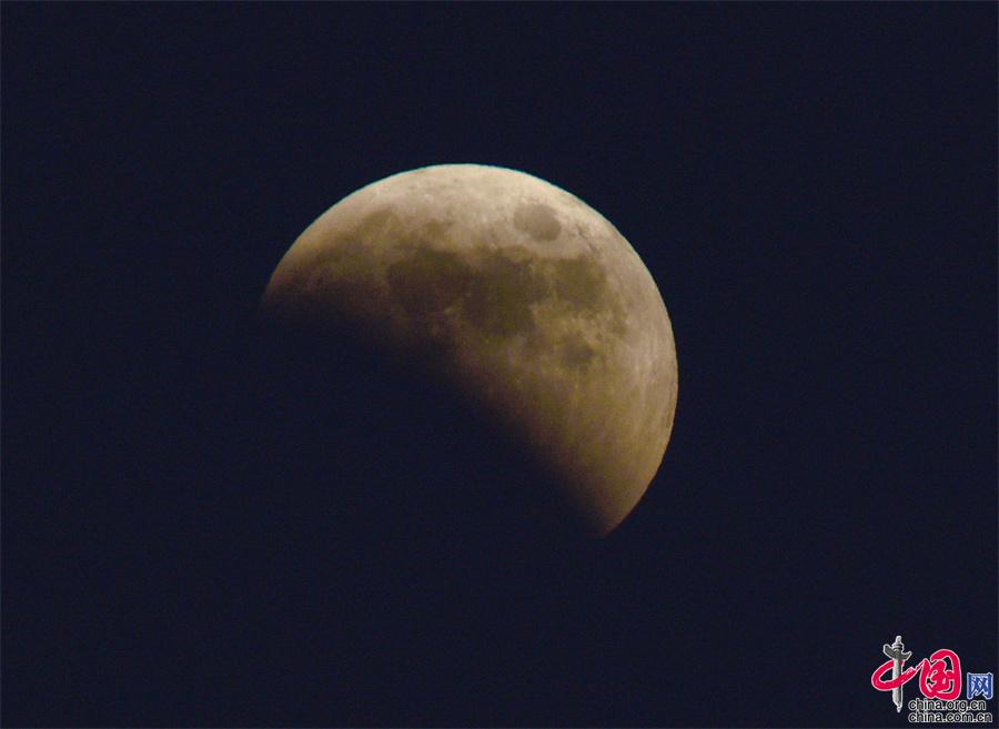 據(jù)了解,這次月全食到恢復(fù)月圓共3個(gè)多小時(shí)。(作者:姚育青)