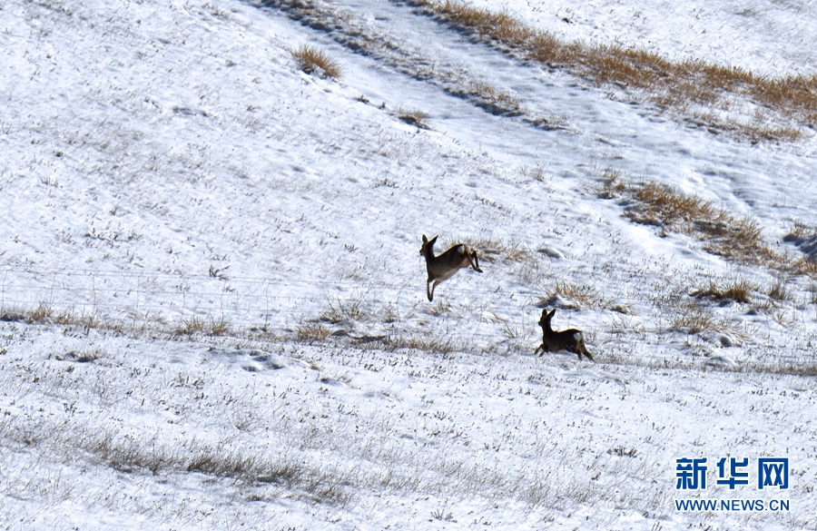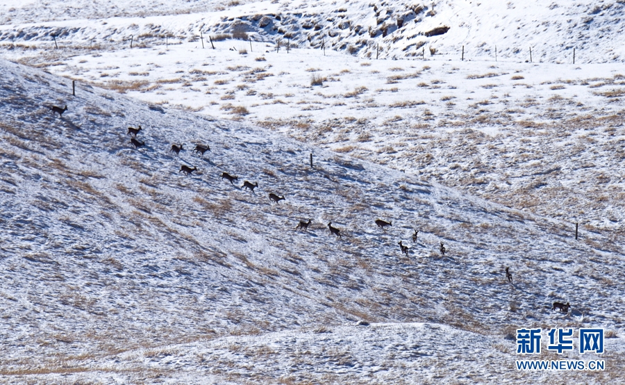11月12日,一場(chǎng)降雪過(guò)后,祁連山國(guó)家公園甘肅省張掖市民樂(lè)縣境內(nèi)被一層薄薄的白雪覆蓋,成群的野生狍鹿漫步在積雪覆蓋的山坡上。它們時(shí)而追逐玩耍,時(shí)而靜臥休息,時(shí)而覓食充饑,展現(xiàn)出一幅人與自然界和諧共生的畫面。