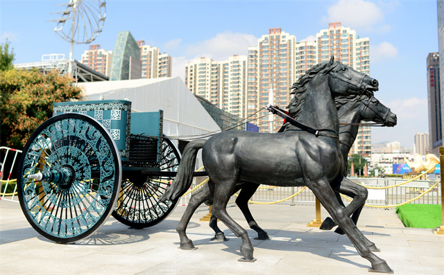 ——文物活化利用工程。作為全國文物大省,甘肅省文旅廳深入學(xué)習(xí)領(lǐng)會(huì)、認(rèn)真貫徹落實(shí)習(xí)近平總書記關(guān)于“讓文物活起來”的重要論述精神,持續(xù)激活文物資源和文化遺產(chǎn)蘊(yùn)含的創(chuàng)新創(chuàng)造基因,不斷提高展示傳播水平,讓文物說話,讓歷史說話,讓文化說話,已經(jīng)成為全省文旅工作者的生動(dòng)實(shí)踐。正在加快敦煌研究院“典范”“高地”建設(shè),推進(jìn)長城、長征、黃河國家文化公園建設(shè)。實(shí)施中華文明探源工程和“考古中國”等重大項(xiàng)目,以甘肅秦文化和西戎文化考古成果為原型復(fù)制“戰(zhàn)國豪車”,賦能文旅產(chǎn)業(yè)。由甘肅省文旅廳組織制作的戰(zhàn)國戎人車輿,嚴(yán)格依照馬家塬戰(zhàn)國戎人貴族墓地出土古車式樣,采用銅雕髹漆等技藝,再現(xiàn)了戰(zhàn)國戎人車輿風(fēng)采,體現(xiàn)了甘肅文旅系統(tǒng)融入“一帶一路”倡議、秉承絲路精神、復(fù)興絲綢之路、構(gòu)建人類命運(yùn)共同體的文化自覺。戰(zhàn)國戎人車馬以文創(chuàng)的形式與甘肅彩車一道復(fù)原展出,即刻走進(jìn)大眾視野,成為甘肅文旅和省會(huì)蘭州的又一張靚麗新名片、城市新地標(biāo)。