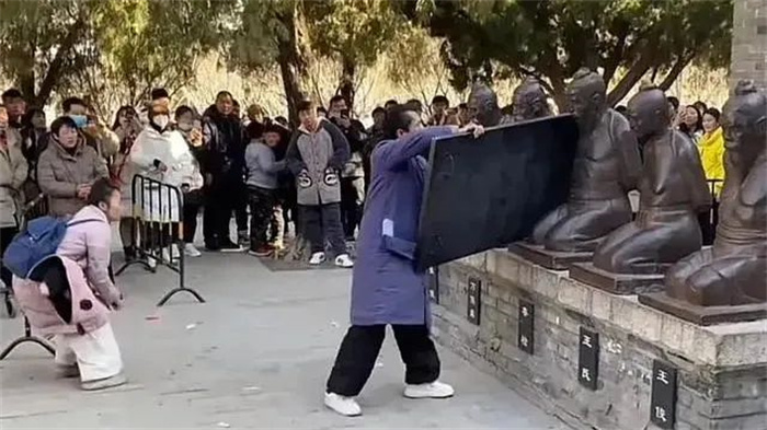 湯陰岳飛廟,游客怒砸秦檜塑像