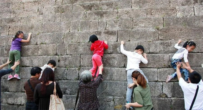 圖片不文明“破窗效應(yīng)”:家長協(xié)助孩子攀爬城墻