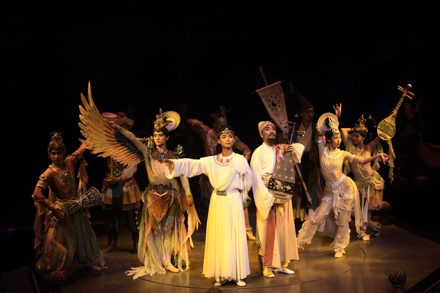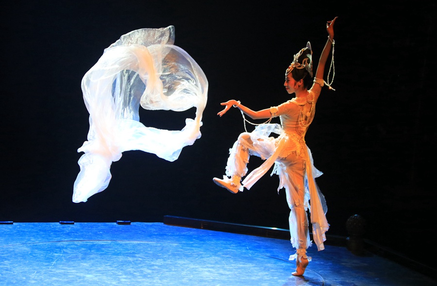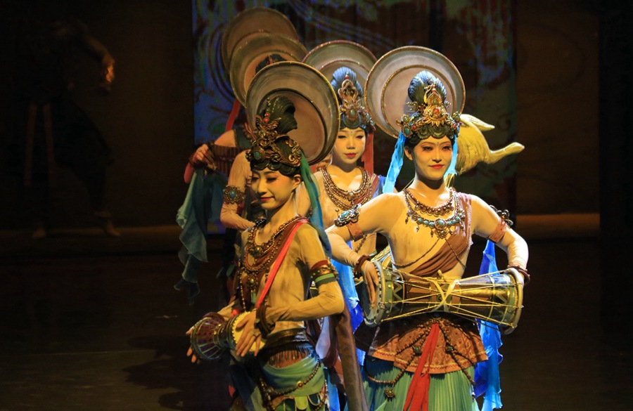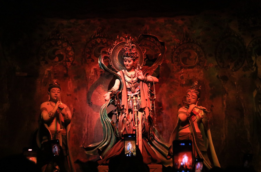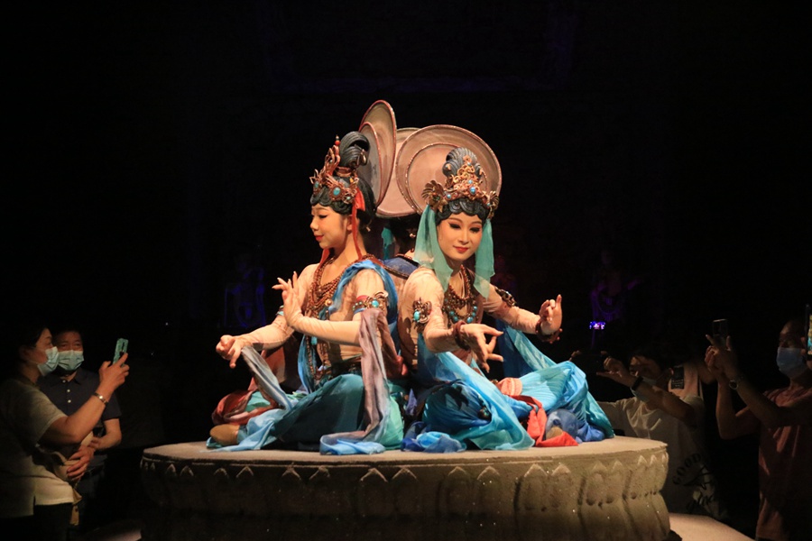大型洞窟式沉浸體驗(yàn)劇《樂動(dòng)敦煌》演出現(xiàn)場(chǎng)。張曉亮攝