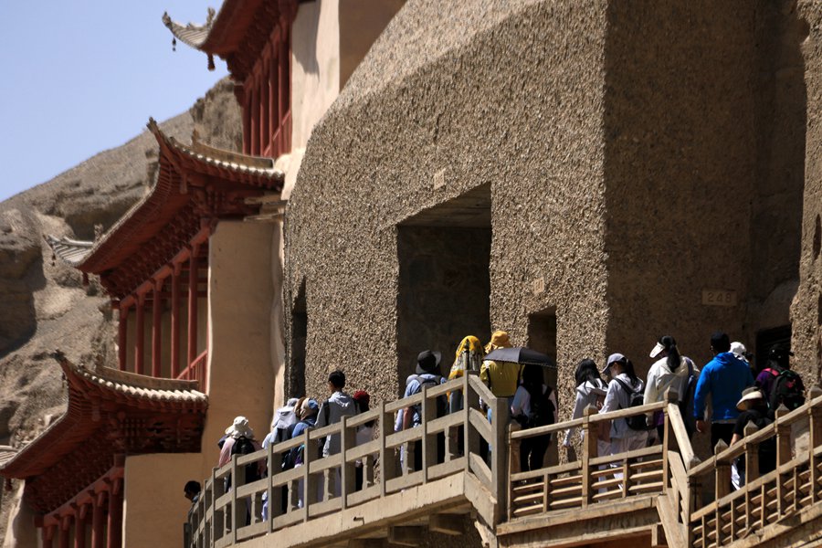 夏日時(shí)節(jié),眾多游客走進(jìn)絲路敦煌,欣賞石窟藝術(shù),觀看經(jīng)典演藝,感受敦煌文化。