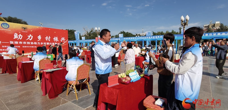 品味張掖好物,助力鄉(xiāng)村振興。在全國科普日甘肅主場活動之一的張掖市農技協(xié)助力鄉(xiāng)村振興直播大賽現(xiàn)場,臨澤縣奮進葡萄種植農民專業(yè)合作社負責人賈宏福運用手中的“新農具”,通過網絡直播的形式,向網友們推介自產的葡萄,并向大家分享科技助農為他帶來的喜悅。