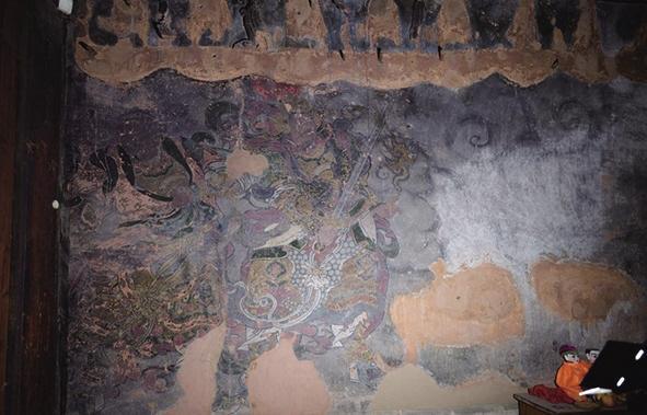 現(xiàn)建筑保存完好,塑像多被破壞,僅存明代懸塑七尊,塑像腳底踩踏祥云,衣帶飄逸靈動(dòng),面容栩栩如生。東西兩壁留有四位天神畫像。殿內(nèi)遺留的龐、劉、茍、畢四大雷部元帥門壁畫,與門楣上方的懸塑和拱眼壁上繪畫的尊神,均是研究明代道教藝術(shù)的珍貴遺存,是當(dāng)?shù)厝濉⒌?、佛三教并存,多元文化共同發(fā)展的歷史見證,對研究土司文化具有重要價(jià)值。