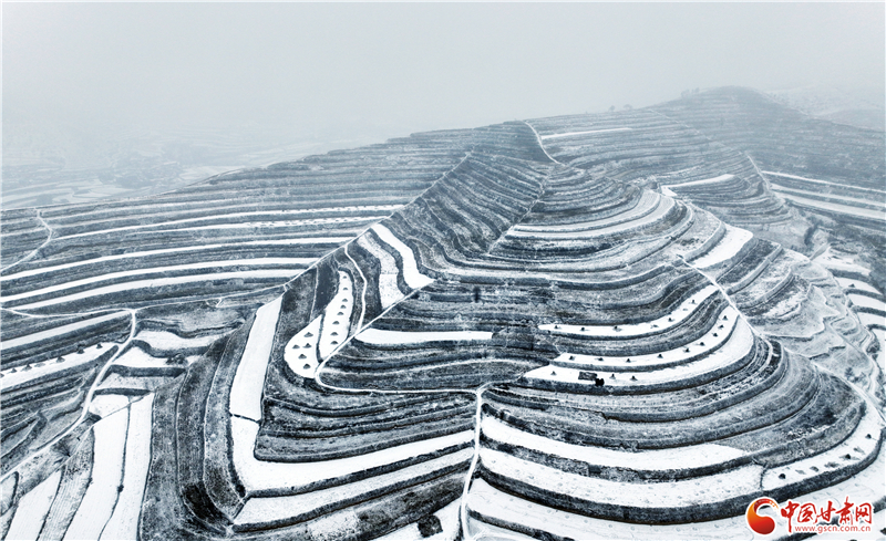 【隴拍客】成紀(jì)大地迎來2024年首場降雪 雪后梯田美如畫