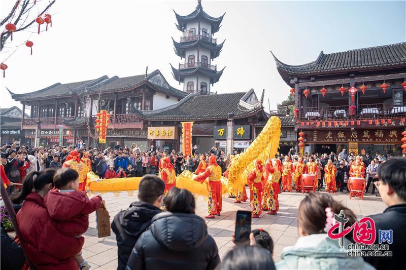 從古牌樓“打春牛”到財(cái)神居“迎財(cái)神”,從水巷“巡游”到老街“打連廂”,從傳統(tǒng)“舞龍舞獅”到創(chuàng)新“踩高蹺”,場場沾得龍行龘龘的好意頭。