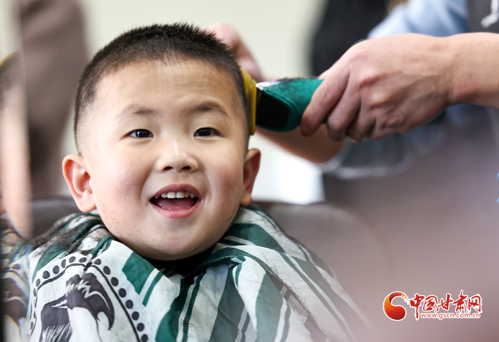 3月11日,在臨夏市一理發(fā)店內(nèi),理發(fā)師正在為一名小朋友“剃龍頭”。當日,是農(nóng)歷二月初二,許多家長帶著孩子到理發(fā)店理發(fā),希望孩子能健康成長,日后出人頭地,為新的一年討個好彩頭。