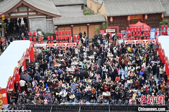 3月16日,天水麻辣燙“吃貨節(jié)”設(shè)置展銷區(qū)、體驗(yàn)區(qū),吸引游客沉浸式感受麻辣燙“熱情”。九美旦增  攝