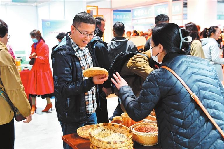游客在展銷(xiāo)會(huì)上選購(gòu)文創(chuàng)產(chǎn)品。新甘肅·甘肅日?qǐng)?bào)記者 高檣