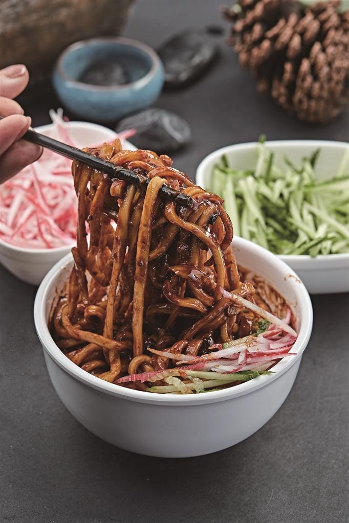 和老北京炸醬面相比,蘭州炸醬面雖然少了時令蔬菜,但是肉醬分量很足,這絕對代表了蘭州人的實在和“碳水之都”的誠意。一口裹上醬汁的面條可以直接“擊碎”饑餓。蘭州人做炸醬用現成的面醬加上肉末、蔥等作為主料,再配以農家常見的蔬菜丁,把肉末上鍋烹炒后放入蔥末,再添加調料炒到半熟加入適當的水用快火燉,炸醬中加淀粉勾芡使炸醬變得柔滑濃香,再配上筋道的手工拉面澆上炸醬,加上辣椒油,淋一點醋那就濃香四溢了。