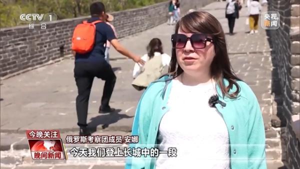 俄羅斯考察團(tuán)成員 安娜:今天我們登上長城中的一段,我的感受非常棒。這段長城登起來不算太累,這點(diǎn)很好。