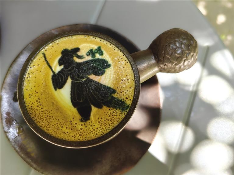 中國甘肅網(wǎng)7月23日訊 據(jù)蘭州晚報(bào)報(bào)道(記者 高宏梅 文/圖)端起一杯咖啡,甘肅省博物館館藏文物銅奔馬微縮圖案漂浮在咖啡之上,精致、唯美;來不及品嘗,省博物館的鷹頭形青銅權(quán)杖首搖身一變,已成為咖啡杯的陶瓷手柄,那厚重、那歷史感,絕對(duì)震撼。這,是甘肅省博物館藝術(shù)生活館(以下簡稱藝術(shù)生活館)的“文物咖啡”。