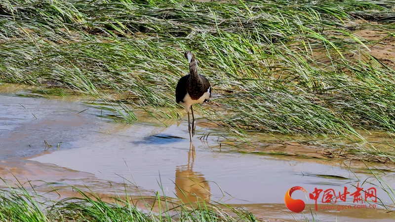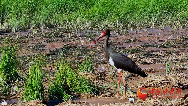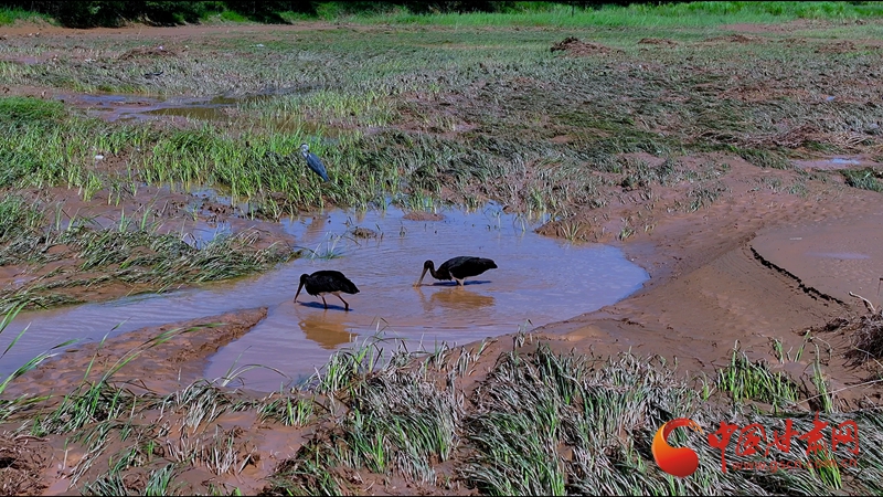 近日,平?jīng)鰶艽h攝影家協(xié)會(huì)主席劉勇,在該縣涇河大橋附近,首次拍攝到數(shù)只國家一級保護(hù)動(dòng)物黑鸛覓食場面。