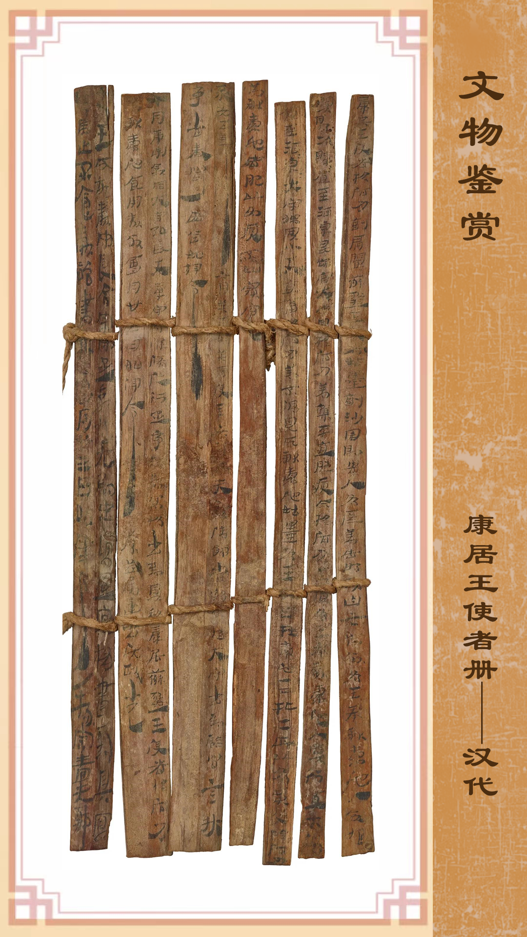 這份珍貴冊(cè)書記錄內(nèi)容為:永光五年(公元前39年),康居王使者和蘇薤王使者及貴人所獻(xiàn)的貢物在酒泉評(píng)估時(shí)發(fā)生了糾紛,朝廷責(zé)令敦煌郡和效谷縣進(jìn)行調(diào)查并將當(dāng)時(shí)的情況如實(shí)上報(bào)。該冊(cè)書的出土,不僅為研究當(dāng)時(shí)的行政和司法審判程序提供了第一手資料,更重要的是為研究漢朝與康居國(guó)的關(guān)系提供了原始資料,亦是今天的中亞各國(guó)研究本國(guó)古代歷史的重要資料,可補(bǔ)傳世史籍之闕載?,F(xiàn)藏甘肅簡(jiǎn)牘博物館。