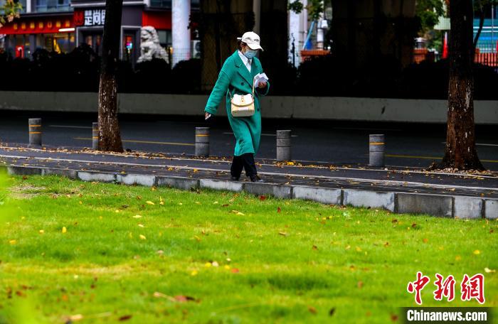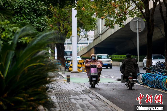 11月25日,市民在街頭出行。當(dāng)日,武漢受寒潮天氣影響,氣溫下降明顯。武漢市氣象臺(tái)24日18時(shí)27分發(fā)布寒潮藍(lán)色預(yù)警信號,受較強(qiáng)冷空氣影響,預(yù)計(jì)24日至26日,武漢最低氣溫降幅達(dá)7℃~9℃。中新社記者 張暢 攝