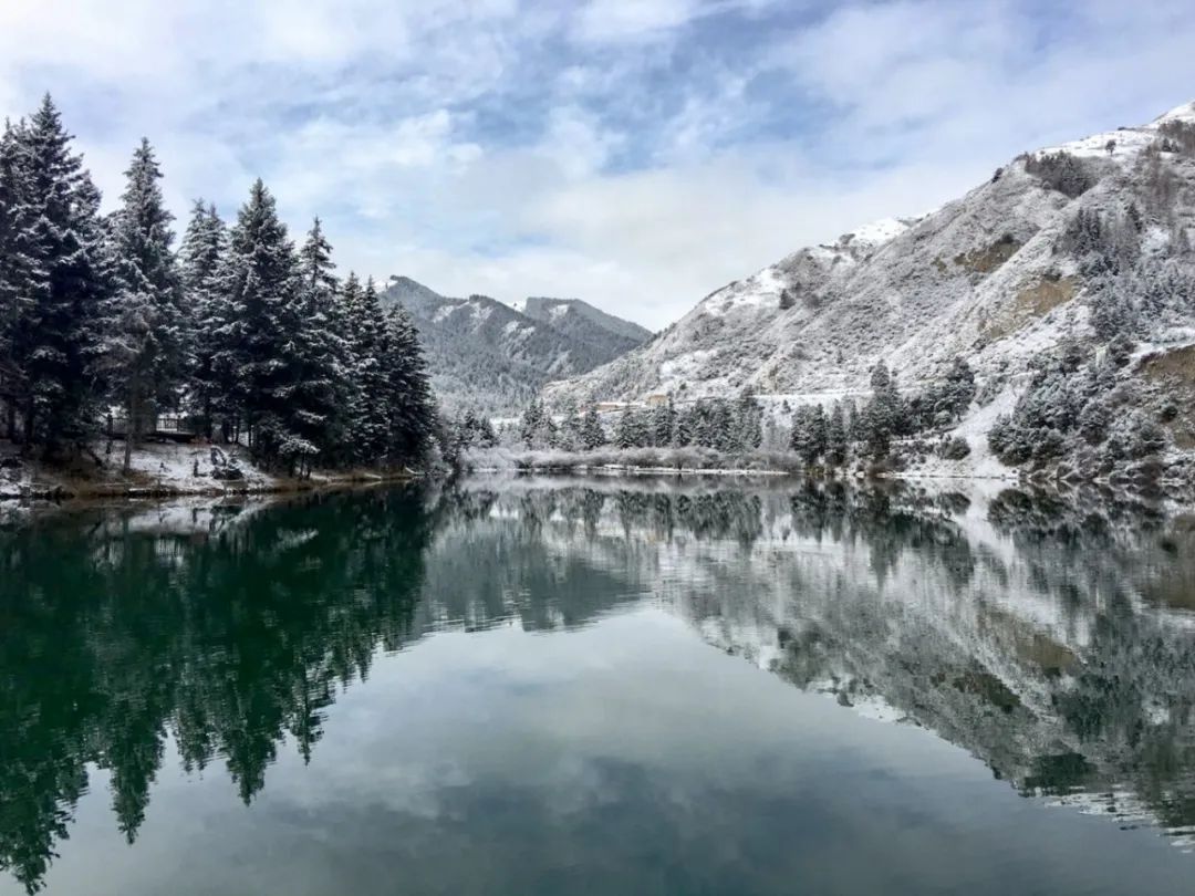 群山環(huán)抱,峰巒疊嶂,山巔之上,白雪皚皚,云霧繚繞,這山、這水、這雪、這霧,共同構(gòu)成了一幅絕美的冬日畫卷,讓人陶醉其中,流連忘返。