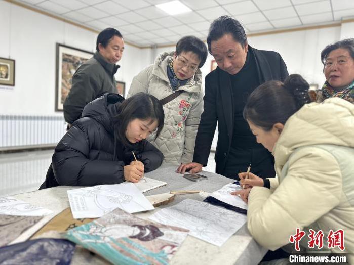 12月17日,由蘭州市七里河區(qū)委宣傳部、七里河區(qū)文體旅局聯(lián)合舉辦的“大漠孤陽映彩霞 敦煌神韻美如畫”新時代文明實踐主題活動暨敦煌巖彩畫書畫藝術(shù)展拉開帷幕。圖為繪畫愛好者現(xiàn)場學(xué)習(xí)繪制巖彩畫。楊娜 攝