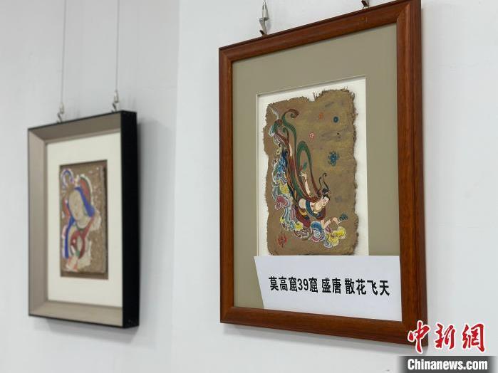 12月17日,由蘭州市七里河區(qū)委宣傳部、七里河區(qū)文體旅局聯(lián)合舉辦的“大漠孤陽映彩霞 敦煌神韻美如畫”新時代文明實踐主題活動暨敦煌巖彩畫書畫藝術(shù)展拉開帷幕。圖為展出的敦煌莫高窟壁畫題材巖彩畫。楊娜 攝