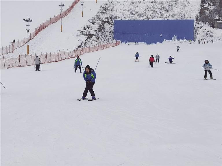 接著來到興隆山滑雪場(chǎng),這里是冰雪運(yùn)動(dòng)愛好者的歡樂天地?;﹫?chǎng)經(jīng)理賈青云介紹,該滑雪場(chǎng)占地超400畝,擁有5條初、中級(jí)滑雪道,是中初級(jí)滑雪愛好者的樂園,今年全新打造的兩萬平方米豪華“戲雪樂園”更是引人注目。“開業(yè)不到一個(gè)月,已接待游客一萬多人,周末日均客流量超一千,平日也有四、五百人,滑雪場(chǎng)可同時(shí)容納2000人滑雪。”賈青云表示,滑雪場(chǎng)近期推出了優(yōu)惠活動(dòng),原價(jià)128元的門票現(xiàn)只需88元,包含滑雪服和存衣柜的使用。值得一提的是,經(jīng)過改造升級(jí)后的滑雪場(chǎng)加入了波西米亞風(fēng)格,設(shè)有拍照打卡地和咖啡廳,成為年輕消費(fèi)者熱衷的網(wǎng)紅打卡點(diǎn),游客在此不僅能滑雪,還能享受火鍋、烤肉等美食,體驗(yàn)別樣的冬日休閑時(shí)光。