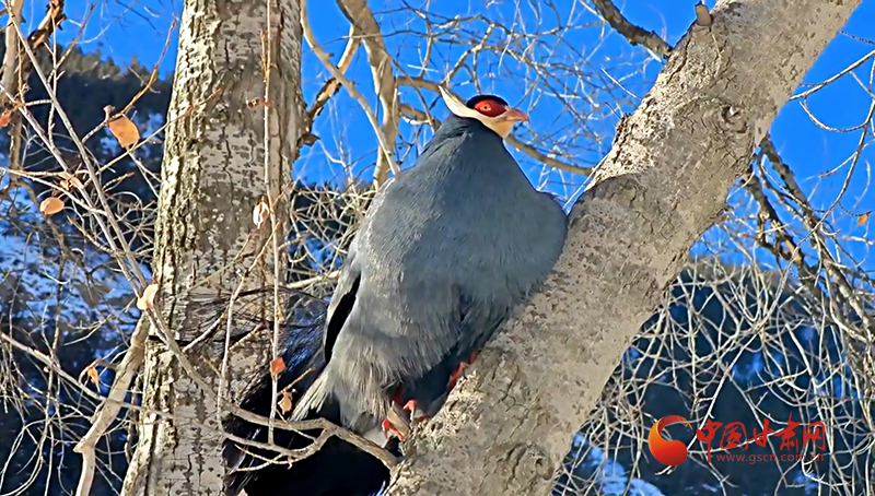 巡護(hù)員用鏡頭記錄下畫面,二十余只藍(lán)馬雞宛如冰雪精靈,在銀裝素裹的喬木林間愜意“聚會”。三五成群的藍(lán)馬雞用強(qiáng)健有力的爪喙翻動雪層,精準(zhǔn)定位埋藏的草籽,專心干飯。距地面十余米的楊樹上,擔(dān)任警戒的“哨兵”不時發(fā)出低沉的咕嚕聲,蓬松的尾羽在陽光下流轉(zhuǎn)著金屬般的光澤。最引人注目的當(dāng)數(shù)林間空地上的“時裝秀”了,“模特”們輪流抖動藍(lán)黑漸變的羽毛,頸后白色耳羽簇如流蘇輕顫,精彩的表演折服了五位“評委”,它們個個目不轉(zhuǎn)睛,生怕漏掉每一個演出細(xì)節(jié)。這場持續(xù)數(shù)小時的藍(lán)馬雞“聚會”也為祁連山國家公園生態(tài)系統(tǒng)健康運(yùn)轉(zhuǎn)做出了生動注腳。