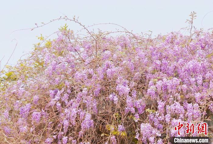 廣西賀州:紫藤花盛放宛如“夢幻紫瀑布”