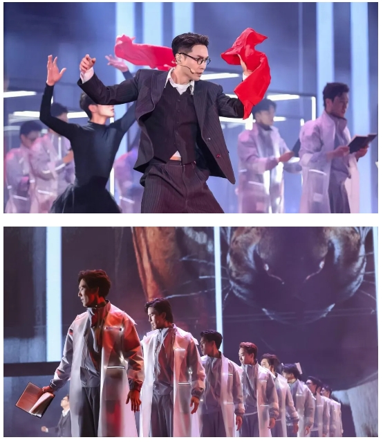 該劇最大的亮點(diǎn)在于創(chuàng)新性藝術(shù)融合,將非遺、科技、禪意、潮流、AI融入先鋒音樂(lè)話(huà)劇,打破傳統(tǒng)觀演模式和傳統(tǒng)舞臺(tái)結(jié)構(gòu),巧妙植入演唱會(huì)、音樂(lè)劇、話(huà)劇、舞劇甚至是電影多種藝術(shù)表現(xiàn)形式,通過(guò)人工智能、影視化、動(dòng)畫(huà)真人融合等最新科技賦能舞臺(tái),實(shí)現(xiàn)“戲劇+影視+Live”多種藝術(shù)場(chǎng)域的融合,“創(chuàng)造”了既現(xiàn)代又滿(mǎn)載中國(guó)審美的“敦煌”空間,讓觀眾沉浸體驗(yàn)敦煌文化的輝煌與魅力。