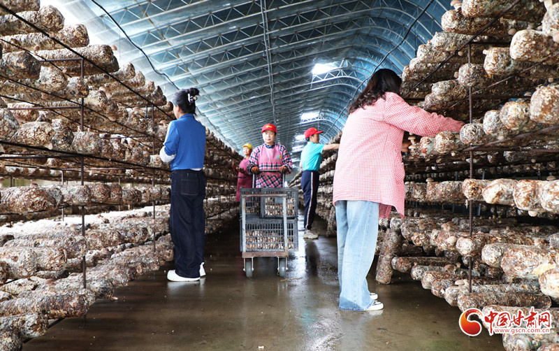 6月26日,在民樂工業(yè)園區(qū)的一家食用菌生產(chǎn)溫室內(nèi),工人們正在采摘成熟的香菇和靈芝,包裝完成后將運往青海、寧夏、新疆等地銷售。