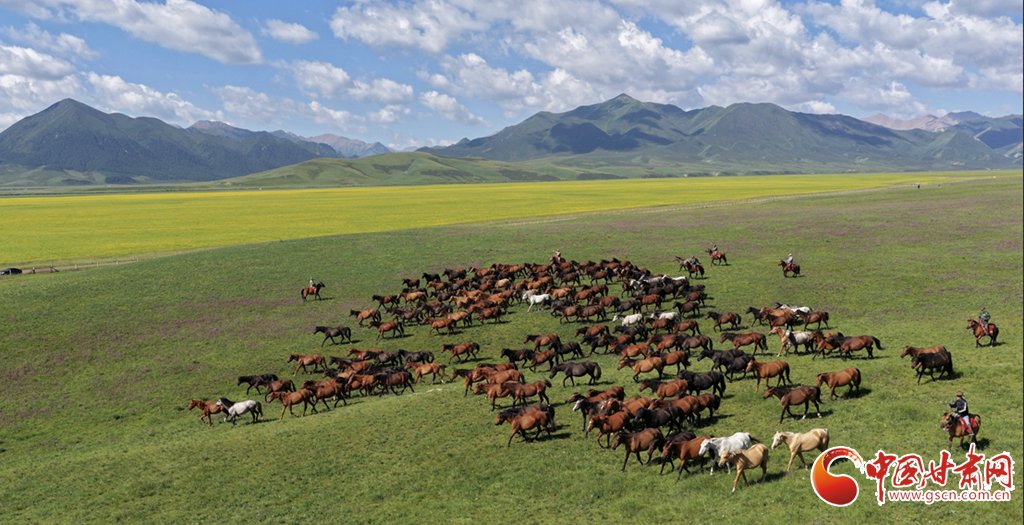 隴拍客丨祁連山下山丹馬場上演壯闊奔馬圖