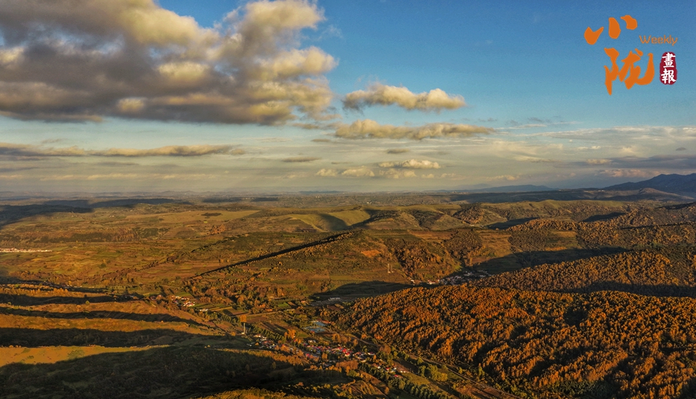 大北山被染成了暖黃色。極目遠(yuǎn)眺,五彩斑斕的山脊,與藍(lán)天、山坳交織在一起,格外溫馨浪漫。漫步其間,宛如行走在金色的油畫(huà)里。