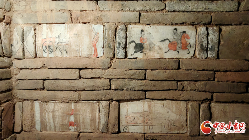 高臺(tái)縣魏晉壁畫墓,位于駱駝城東南5公里處的戈壁臺(tái)地,該墓曾兩次被盜,90年代后期由甘肅省文物考古研究所與高臺(tái)縣博物館實(shí)施搶救性清理。其中,100多塊彩繪畫像磚成為學(xué)界焦點(diǎn)。