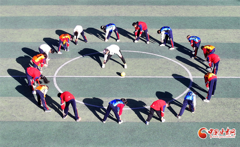 11月11日,在張掖市民樂縣洪水小學(xué)的足球場上,學(xué)生們在進(jìn)行足球訓(xùn)練。