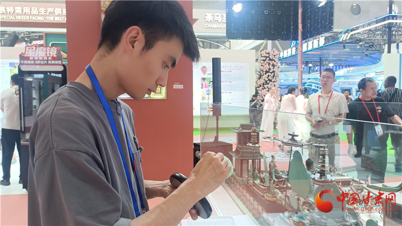 自面塑《觀無(wú)量壽經(jīng)變》完美呈現(xiàn)以來(lái),楊凱帶著作品先后參加了敦煌文博會(huì)、深圳文博會(huì),這次又以C位出道參加蘭洽會(huì)。