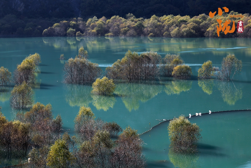 白龍江湍急的流速在此悄然蛻變?yōu)橐粸硿赝竦谋滩ǎ娉纬喝珑R,映照出如江南般清淺而纏綿的景致。