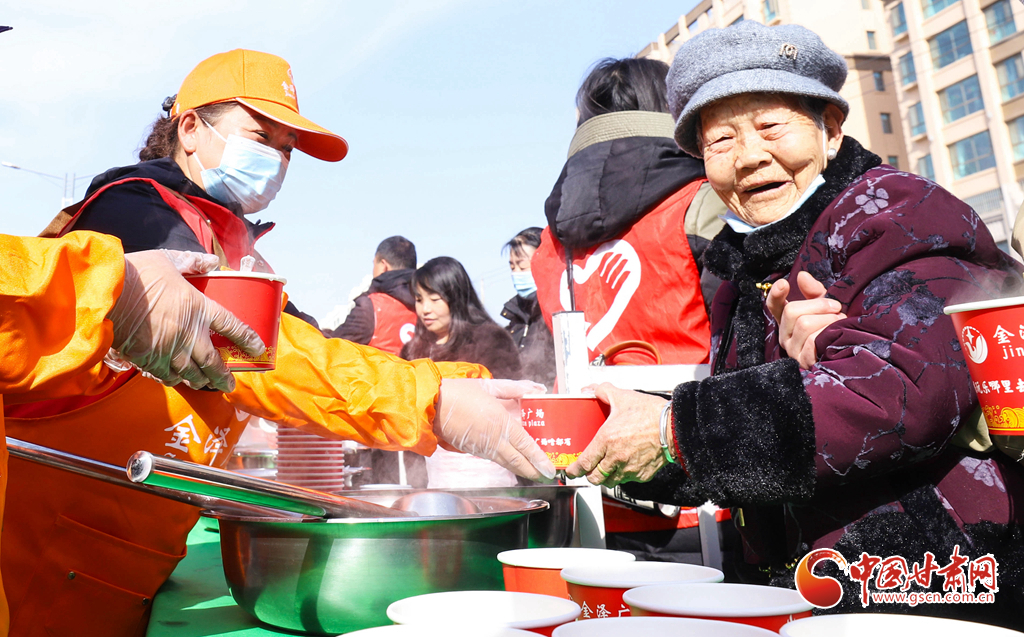 3月3日,張掖市臨澤縣金澤廣場上,志愿者們給群眾煮元宵。