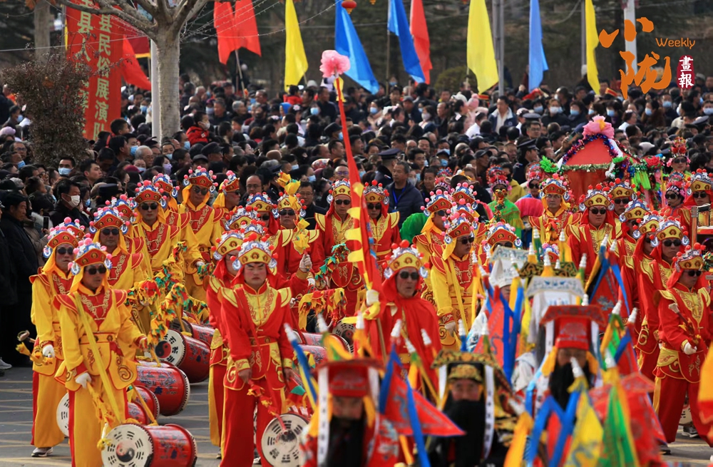 鑼鼓鏗鏘震耳,社火隊(duì)伍最精彩的“八仙”穿紅著綠,飄飄搖搖地過(guò)來(lái)了。鐵拐李晃著葫蘆,何仙姑輕搖荷花,呂洞賓拂塵一甩,那眉眼間的神氣,活脫脫從畫(huà)上走下來(lái)的。人群潮水般涌動(dòng)著,爭(zhēng)相一睹這熱鬧光景。